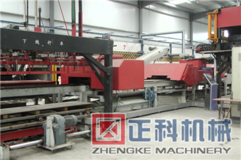该生产线由自动配料、连续搅拌、滑板式螺旋挤压、托板自动上板、板料输送、成型控制、同步切割、二次切割、自动码垛、初凝养护温湿度控制、总控机等主要部分组成。主要技术参数如下: